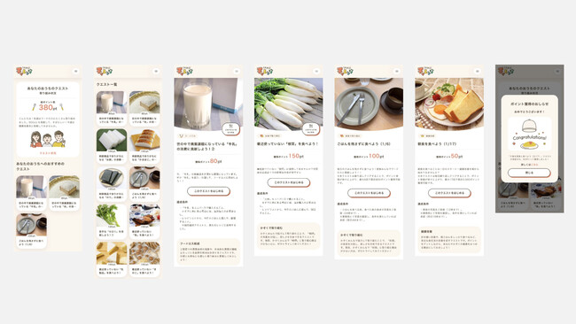 クエストにはそれぞれ、食生活データの登録といった達成条件が設定されており、達成時には、クエストごとに設定されたポイント(ユニバースで利用できるRARAポイントに交換可能)が付与されます。