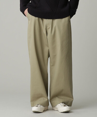 また、ブランド定番のT/Cツイルを使用し、古着であるような生地感を再現する為に強めのストーンウォッシュ加工をし、経年変化したアタリを表現。