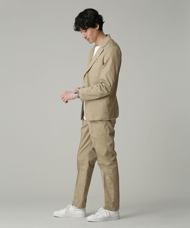 セットアップに関してはジャケットとパンツそれぞれ別売りの販売。ナノ・ユニバースの強みを生かした細見でスリムなシルエットで表現。ストレッチ素材為、そのまま自転車通勤などもしやすくなっている。