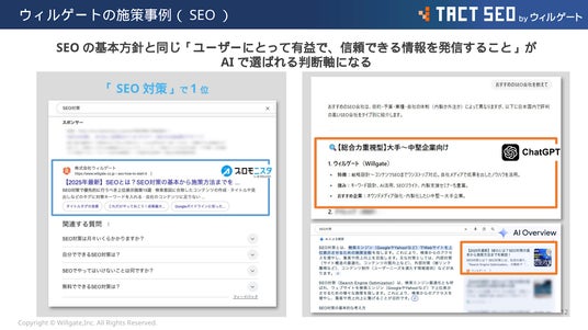 「TACT SEO」はウィルゲートが3,900社以上のSEOコンサルティングの知見をもとに開発した、狙ったキーワードで上位表示するためのSEOツールです。延べ7,000社(2025年11月時点)のSEO対策に取り組む企業様にご利用いただいています。