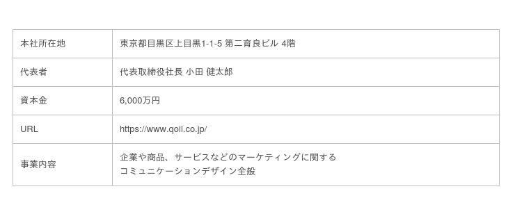 株式会社Qoilは、コミュニケーションにおける“スイッチ”をデザインして、人を動かす会社です。お客様の事業・商品・サービスのなりたい未来を実現するために、現状のボトルネックを紐解き、戦略策定から企画立案・実行・改善までご一緒します。オフラインからオンラインまで、双方の利点を活かし融合させたセールスプロモーションを強みとしています。