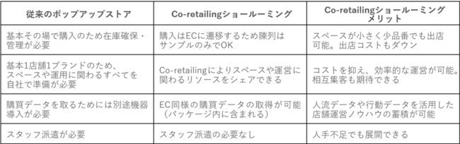 ■従来のポップアップストアと比較したCo-retailingショールーミングの特長