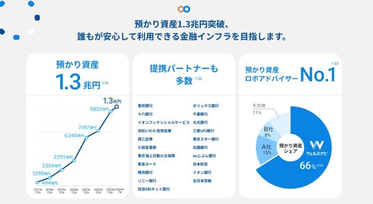 資産運用に留まらず、ライフステージに応じたお金の悩みを総合的に解決するサービスの実現を目指します。
