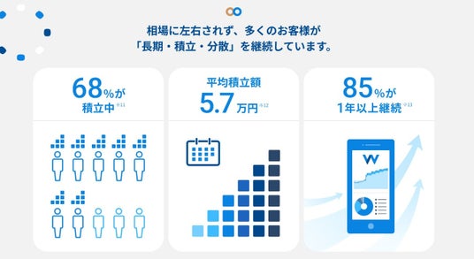 ※13 2023年6月30日までに運用を開始した口座数のうち、運用開始月から12カ月後にWealthNaviで運用している口座数の割合(小数点第1位を四捨五入)。