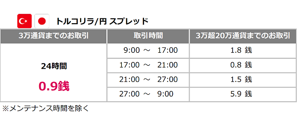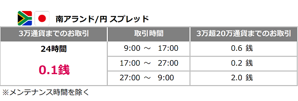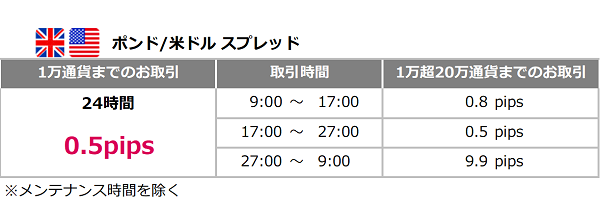 ※主要経済指標発表時等の急変時、国内外の休日や平日早朝など著しい流動性低下時はやむをえずスプレッドを拡大する場合がございます