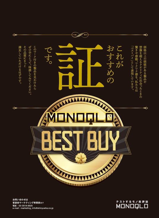 “使う人目線”の厳しいテストの結果、編集部が “本当におすすめできる” と認めた製品に認証マークを付与しています。いくらお金を積んでも手に入らないこのマークは、受賞企業様の商品販促としてご活用いただいています。
