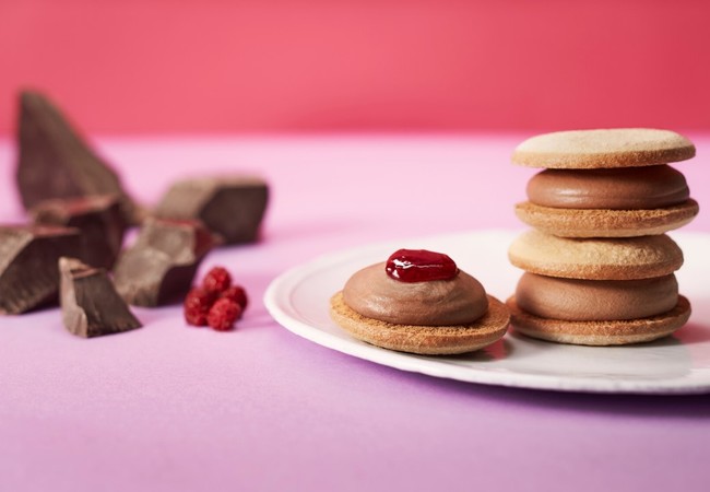 ふんわりと焼き上げたやわらかなビスキュイに、ベルギー産チョコレートを使用したチョコレートクリームと、つぶつぶ食感のラズベリーソースをサンドしました。チョコレートの濃厚な風味を甘酸っぱいラズベリーが引き立てる大人のケーキ、ショコラフランボワーズを彷彿とさせる奥深く華やかな味わいをお楽しみください。