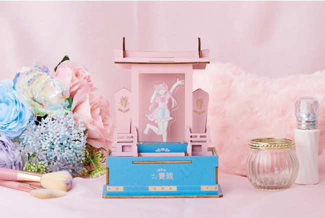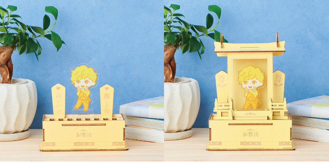 付属のジョイントパーツを付けることで、別売りの「推しを祀る神棚」との合体も可能。神棚に祀り、神々しくなった御神体に向けてお賽銭を捧げることで、推しへの尊さもより深まるはずです。