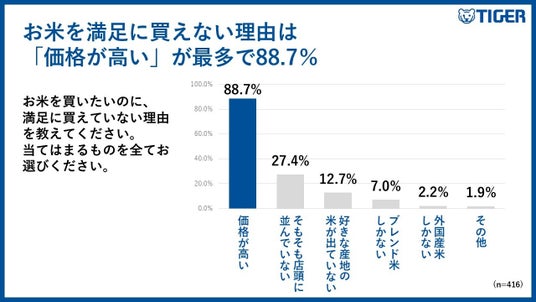●お米を満足に買えない理由は「価格が高い」が最多で88.7%