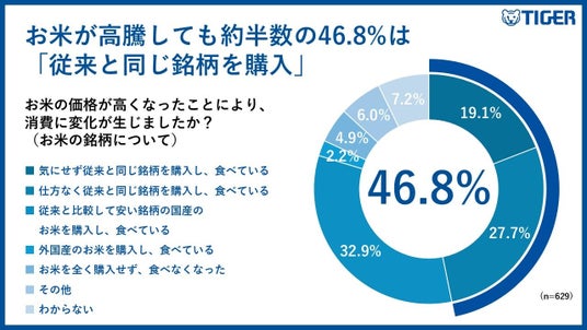 お米が高騰しても約半数の46.8%は「従来と同じ銘柄を購入」