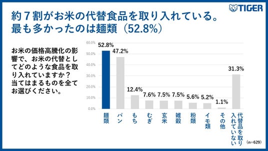 ●約7割がお米の代替となる食品を取り入れている。