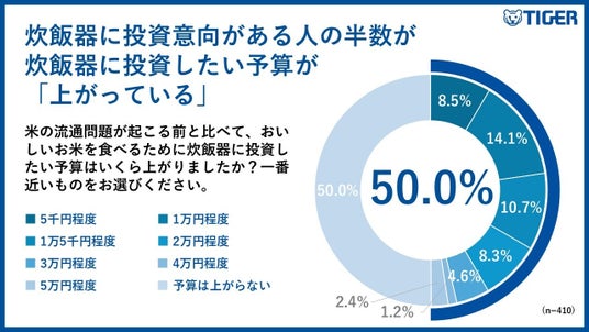 おいしいお米を食べるために炊飯器に投資したい予算が「上がっている」と回答