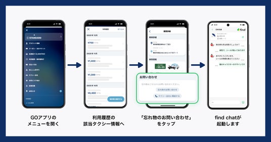 GO株式会社(本社:東京都港区、代表取締役社長:中島 宏)が展開するNo.1※タクシーアプリ『GO』と株式会社find(東京都港区、代表取締役CEO:高島 彬)が提供する「落とし物クラウドfind」は、タクシー利用時の落とし物に関する問い合わせ体験を改善する新たな連携を東京都内より開始します。本連携により、タクシー車内で忘れ物をした可能性があるお客様は、乗車時に利用した『GO』アプリの利用履歴から該当するタクシーを特定した上で直接「find」を通じて落とし物検索・問い合わせが可能になります。2026年1月20日(火)より『GO』アプリ加盟かつ「find」に対応する東京都内の200以上のタクシー営業所にて開始し、電話などでの問い合わせをせずとも、よりシームレスで簡単に落とし物の問い合わせができるようになります。