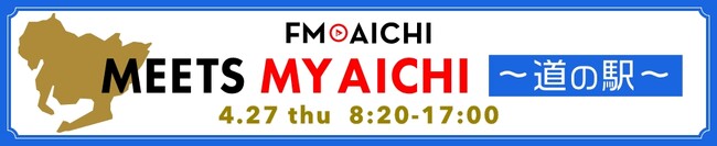 ■放送日時:2023年4月27日(木) 8:20~17:00■タイトル:「FM AICHI“MEETS MY AICHI”~道の駅~」■内容:当日、MORNING BREEZE、DAYDREAM MAGIC、AFTERNOON COLORSの3番組で「道の駅」をピックアップします。GW直前、道の駅の注目のグルメや施設の最新情報など、とっておきの情報で道の駅の魅力をお届けしていきます。【各ワイド番組取材先】・「MORNING BREEZE」(8:20~10:50) / 瀬戸しなの(瀬戸市)、どんぐりの里いなぶ(豊田市)・「DAYDREAM MAGIC」(11:30~14:30) / 田原めっくんはうす(田原市)、藤川宿(岡崎市)・「AFTERNOON COLORS」(14:30~17:00) / にしお岡ノ山(西尾市)、もっくる新城(新城市)