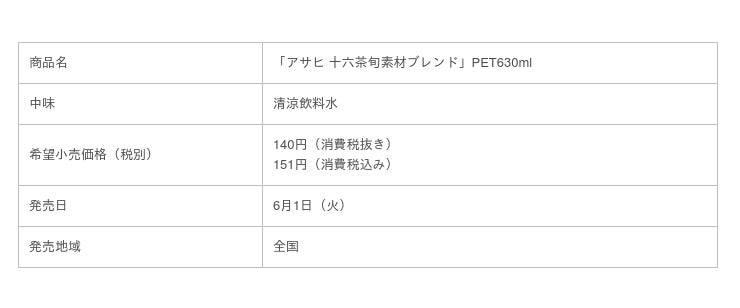 アサヒ飲料株式会社(本社 東京、社長 米女 太一)は、「アサヒ 十六茶旬素材ブレンド」PET630mlを6月1日(火)より全国で発売します。