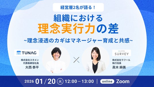 人的資本・ウェルビーイング経営を支援するラフール(本社:東京都中央区、代表取締役社長:結木啓太、以下「ラフール」)は、1月20日(火)に「経営層が語る!理念の実行に差が出る組織の違いとは~理念浸透のカギはマネージャー育成と共感~」をテーマとしたセミナーを、株式会社スタメン社と共催で開催します。