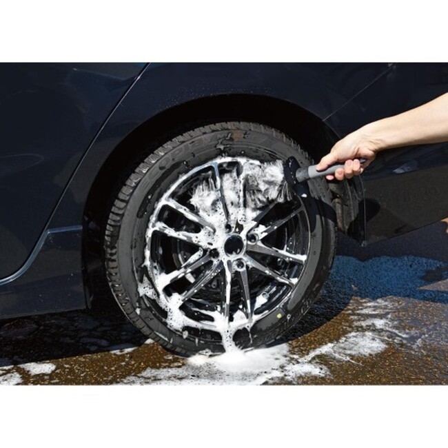 ・360度ブラシが付いているため、ホイールの隙間などを洗いやすい。また、ブラシの毛が柔らかく部品を傷付けにくい。