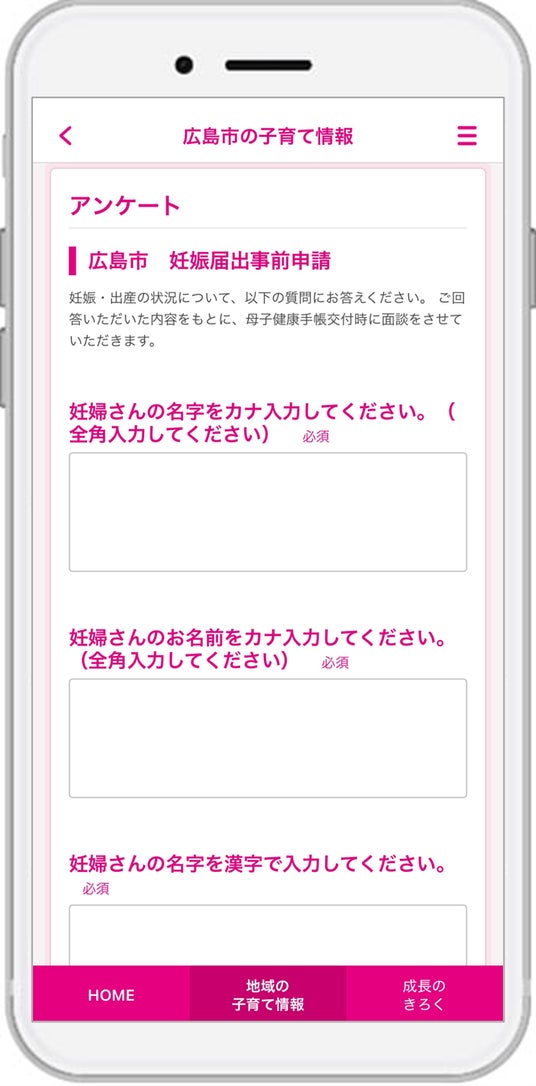 今回「質問票サービス」の導入によって、保護者は妊娠届の事前申請がアプリを通じて可能となります。