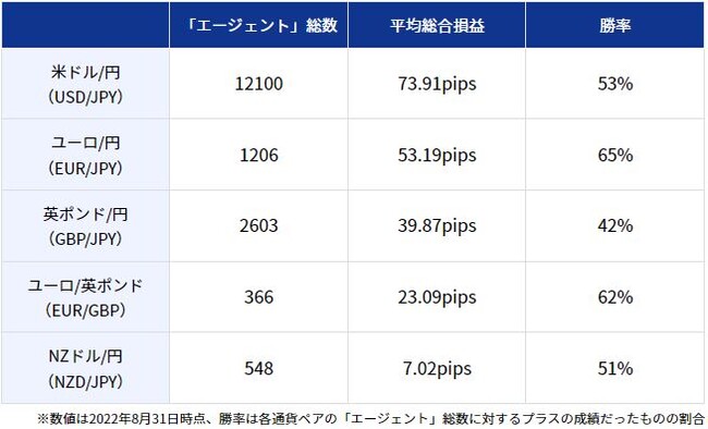 6~8月の通貨ペア別TOP100「エージェント」総合損益