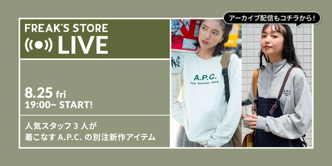 8/25(金)19:00より、A.P.C.とFREAK'S STORE別注のスペシャルモデルをご紹介!この秋冬オススメアイテムを使ってスタイリング別に解説いたします!