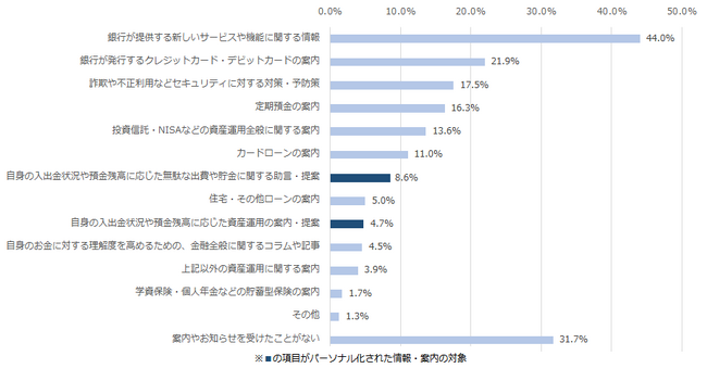※パーソナル化された資産運用の案内・提案については「自身の入出金状況や預金残高に応じた資産運用の案内・提案」の回答者を対象とした。