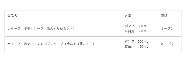 「ナイーブ 冷んやり桃ミント」は、ブランドの最大の特長である“サッパリ”を生かしつつ、「桃果汁&ミントエキス」(うるおい成分)と「メントール」(清涼成分)を配合し、ジメジメと暑い日本の夏も過ごしやすくなるような冷んやり感のあるすっきりとした洗い心地を実現。ベタつきが気になる夏の肌を冷んやりさらさら素肌へ導きます。