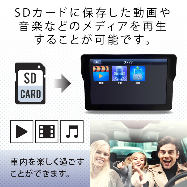 音楽ファイルや動画ファイルを保存したmicro-SDカードの再生が可能、ナビ以外でも楽しむことが出来ます。