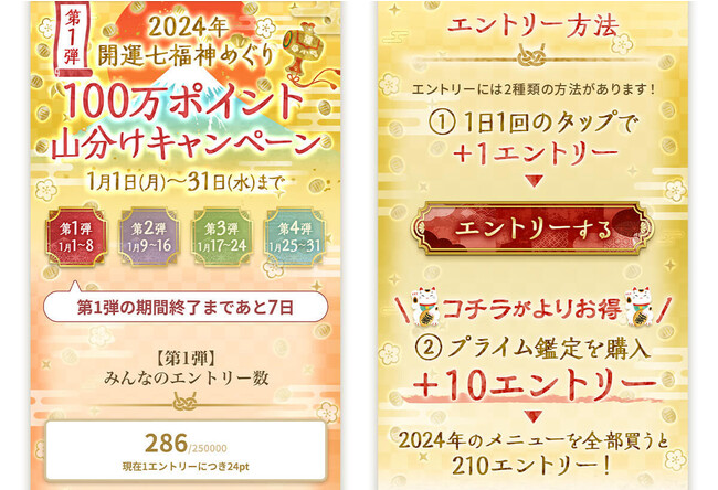 さらに、バージョンアップした「七福神めぐり」から、初の試み「総額100万ポイント山分けキャンペーン」を実施します。