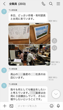 JA鹿児島きもつきのフード事業(農畜産物直売所・レストラン)の統括・運営を担う食の創造推進室では、一部の組合員のLINEと「LINE WORKS」の外部トーク連携でつながり、農畜産物直売所「どっ菜市場」で販売する農作物に貼り付ける組合員の顔写真や田畑の写真を、トークグループ上で収集する試みを実施しています。今後より多くの組合員とつながることで、画像の共有だけではなく頻繁に有意義な意見交換やアイデア共有が実現するのではないかと期待しています。