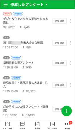 研修の出欠席や農産物の注文などの配布・回収がアンケート機能で簡便に
