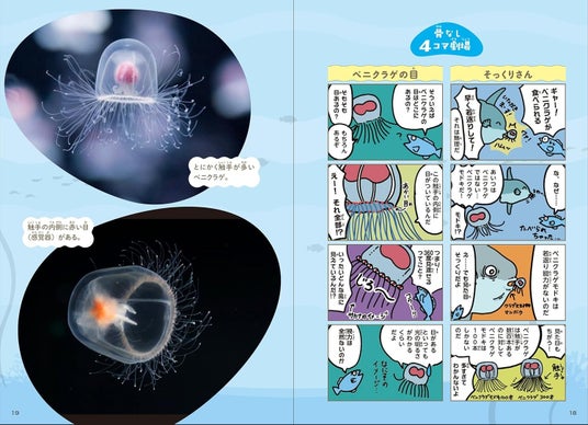 また、いきものたちの体についても、図解ですみずみまで解説。ふしぎな触手や感覚器官、細胞などのつくり、特徴がひと目でわかります。北里大学海洋生命科学部講師を務める研究者、広瀬雅人氏監修の元、おもしろいだけではない、しっかりといきものについて学べる図鑑になっています。