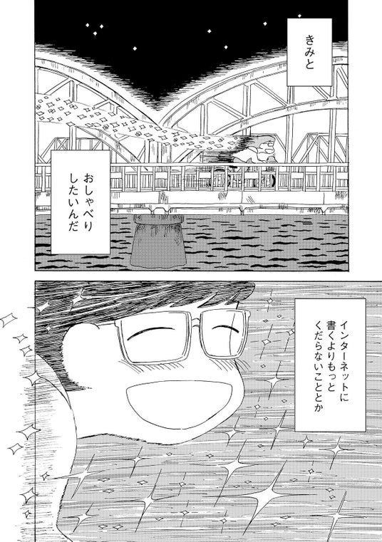 兵庫県明石市出身。18歳で上京し、その後紆余曲折あり大阪で暮らす。現在は東京都在住。2006年に『アックス』(青林工藝舎)にて誌面デビュー。今作『恋とか夢とかてんてんてん』が初長編連載で、初単行本化作品となる。