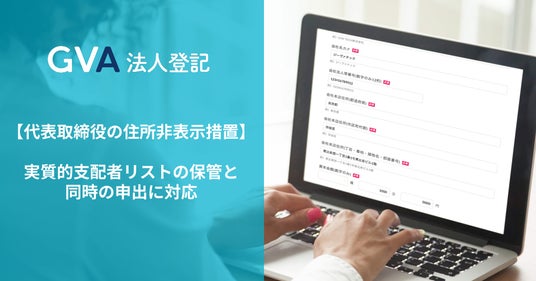 リーガルテックサービスの開発・運営を行うGVA TECH株式会社(本社:東京都渋谷区、代表取締役:山本 俊)の法人登記クラウドサービス「GVA 法人登記」にて、代表取締役の住所非表示措置の申出の登記申請において、実質的支配者リストの保管申出が同時にできる機能改善を行ったことをお知らせします。