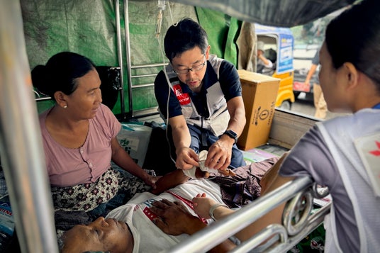 震源に近いザガインで医療支援を開始。発災から一週間経過した現在でも重傷者の姿が。