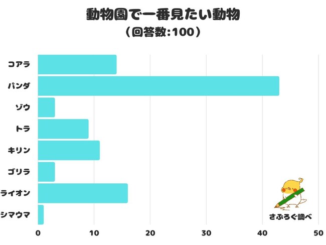 100人にアンケートを行ったところ、「パンダ」と回答したのは全体の43.0%でした