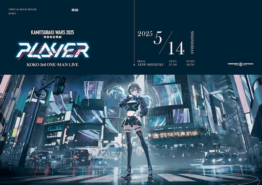 KAMITSUBAKI STUDIO所属のバーチャルシンガー・幸祜が、3rd ONE-MAN LIVE「PLAYER III」をZepp Shinjuku(TOKYO)にて開催いたします。