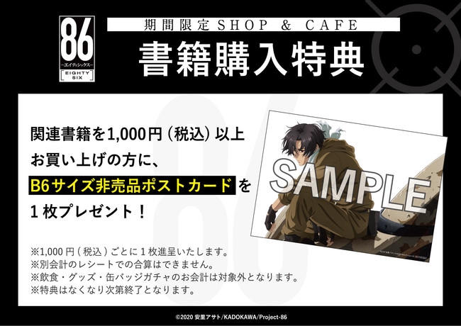 「AMOCAFE池袋店」と「マンガ展 池袋」の【TVアニメ「86―エイティシックス―」コラボカフェ】イベント期間中のレシート2,000円(税込)毎にそれぞれの飲食特典をプレゼント!