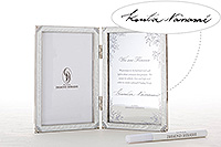 大切なワンシーンと、誓いの言葉を記した結婚証明書をふたりの大切な想い出として飾ることができます。ブライダルシーンに華を添える品の良いデザインでありながら、インテリアにもマッチするよう仕上げました。(ふたりの名前を書き込める専用のペンが付属しています。)