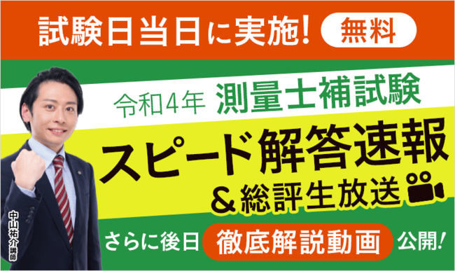 本試験当日の18時から、中山祐介講師による令和4年度測量士補試験の総評動画をスピード配信いたします。是非ご覧ください。
