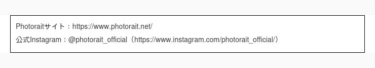 当社の運営する「Photorait(フォトレイト)」公式Instagramアカウント(@photorait_official)をフォロー
