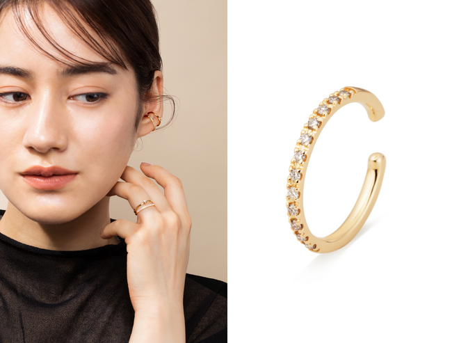 今回のプレゼントは、軽やかな輝きの輪が耳元を彩るエタニティタイプのイヤーカフです。ブライダルジュエリーを手がけるブリリアンス・プラスならではの上質な存在感とこだわりが感じられるアイテムです。