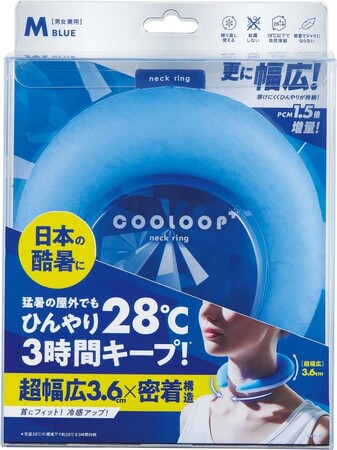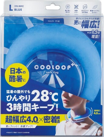 従来のCOOLOOPが超幅広×密着構造になってひんやり長時間キープ!1.5倍太い形状になって新登場。