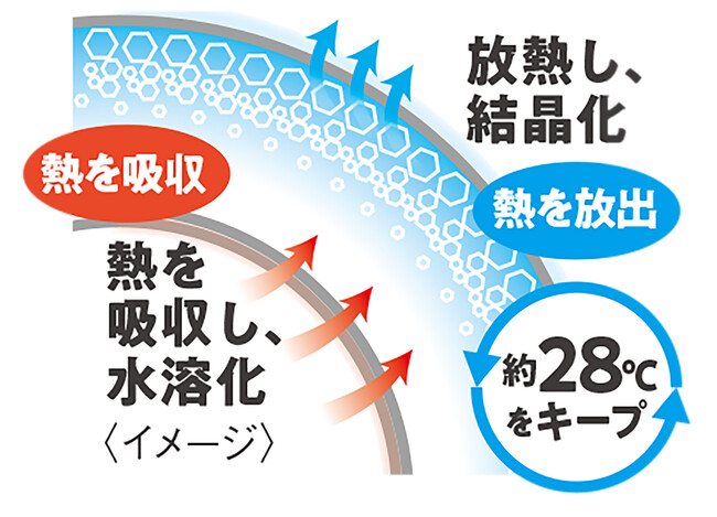 「COOLOOP」は温度環境によって、凍ったり溶けたり(個体⇔液体)を繰り返しながら吸熱、放熱します。