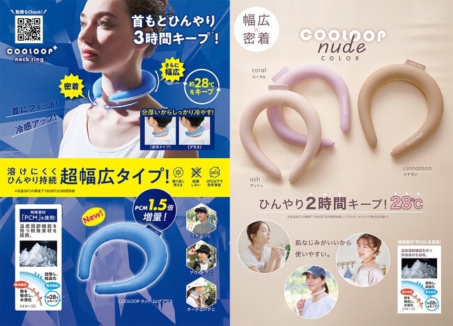 株式会社コジット(本社:大阪府大阪市、代表取締役:久保慎一郎)は、「冷却不要」「約28度を長時間キープ」「結露がでない」次世代の特殊素材「PMC」を使用した「COOLOOPシリーズ」がリニューアル!「COOLOOPネックリング プラス」「COOLOOP nude COLOR」「COOLOOPネックリング」の3アイテムを2024年3月1日(金)より全国発売します。