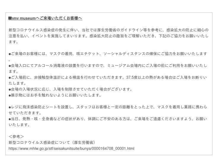 ※各店舗の営業時間に準じ、特に年末年始等、hmv museumの営業日・営業時間が変更となる可能性がございます。ご了承ください。
