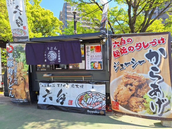 同じく筑後広域公園の芝生広場では、筑後七国活性化協議会の協力のもと、筑後七国から人気のキッチンカー4台が出店ブースエリアに登場します。お昼ごはんからスイーツ・軽食と、屋外で味わうことができます。(各飲食物は販売)