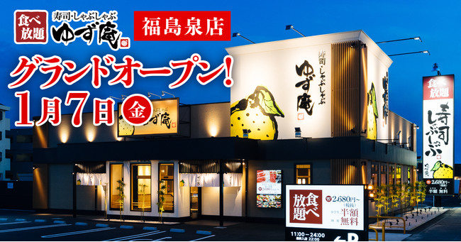 株式会社物語コーポレーション(本社:愛知県豊橋市/代表取締役社長:加藤 央之)が展開する『寿司・しゃぶしゃぶ ゆず庵』は、全国92店舗目の『寿司・しゃぶしゃぶ ゆず庵 福島泉店』(福島県福島市)を、2022年1月7日(金)にグランドオープンいたします。