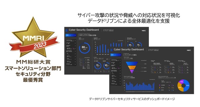 NECとNECセキュリティが提供する「データドリブンサイバーセキュリティサービス」が、「MM総研大賞2023」のスマートソリューション部門セキュリティ分野において最優秀賞を受賞しました。