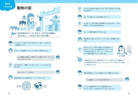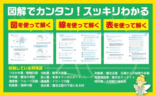 会話文形式のストーリーを読み進めるだけで特殊算の基本がわかります。