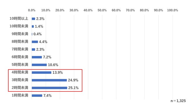「普段、ドライブに行く」と回答した人がドライブにかける平均的な<往復時間>に関しては、最も多かった回答が「2時間未満(25.1%)」、続いて「3時間未満(24.9%)」「4時間未満(13.9%)」という結果になりました。
